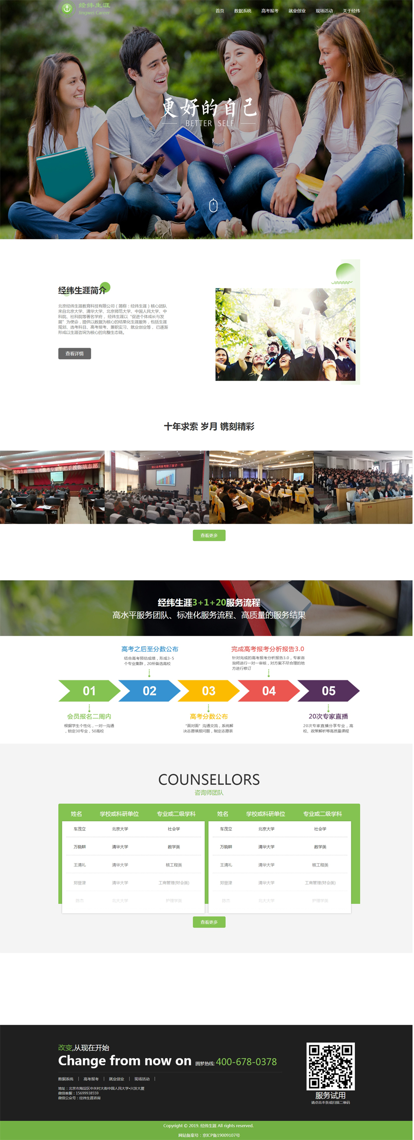 Project Description 北京经纬生涯教育科技有限公司(简称:经纬生涯)核心团队来自北京大学、清华大学、北京师范大学、中国人民大学、中科院、社科院等著名学府, 经纬生涯以“促进个体成长与发展”为使命,提供以数据为核心的结果化生涯服务,包括生涯规划、选考科目、高考报考、兼职实习、就业创业等, 已逐渐形成以生涯咨询为核心的完整生态链。 Official website address 辽源http://www.jingweishengya.com/ I want to share